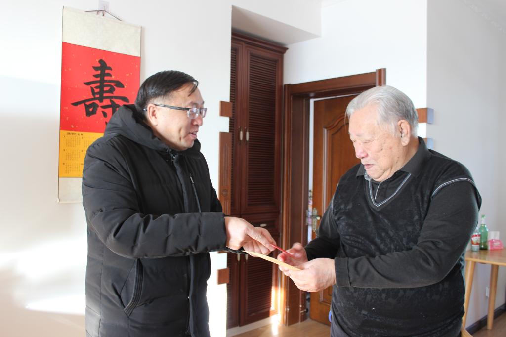 1月13日—19日,在2020年春节即将来临之际,校党委书记王广利,校长王曙光,党委副书记张国栋,副校长乌云达来、孟祥宏,纪委书记岳勇在校工会主席邱玉臣等人员的陪同下,分别走访慰问了12名离休老干部、退休老党员、道德模范、大病职工困难职工,给他们送上慰问金和节日祝福,带去了学校党委行政的亲切关怀。