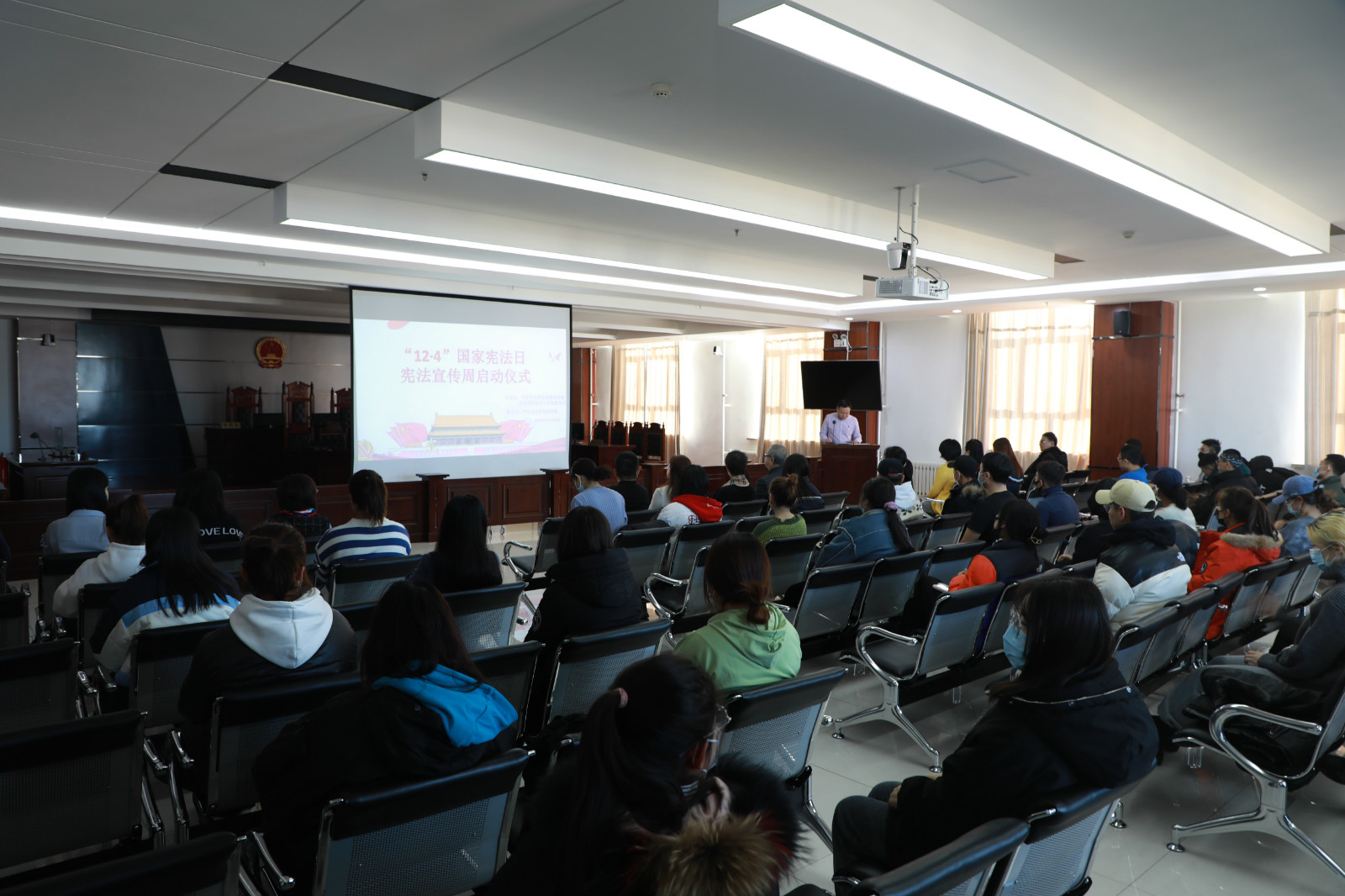 为认真学习贯彻习近平法治思想,深入贯彻落实党的十九大和十九届二中、三中、四中、五中全会精神,推动全校师生学习宣传宪法,弘扬宪法精神,维护宪法权威。12月4日上午10点,由学校党委宣传部、团委主办,法学院承办的“宪法宣传周”启动仪式在崇文楼B座模拟法庭内举行。校党委委员、宣传部部长刘秀兰,校团委书记郝新君,法学院班子成员及各学院师生代表共同参加了活动。启动仪式由法学院党总支副书记白杰主持。