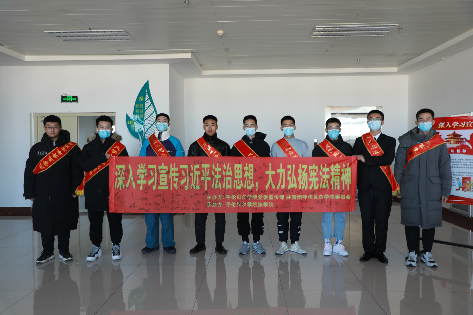活动当天,法学院派学生参加了呼伦贝尔市司法局呼伦贝尔市非诉纠纷调处中心与永利yl23411集团官网联合开展的宪法宣传活动,引导市民学法懂法守法用法;开展了线上宪法进校园、宪法进企业专题讲座;进班级、进宿舍、进办公室、进图书馆、进食堂等发放宣传单;通过“铸梦法苑”微信公众号开展线上宪法知识有奖竞答活动。