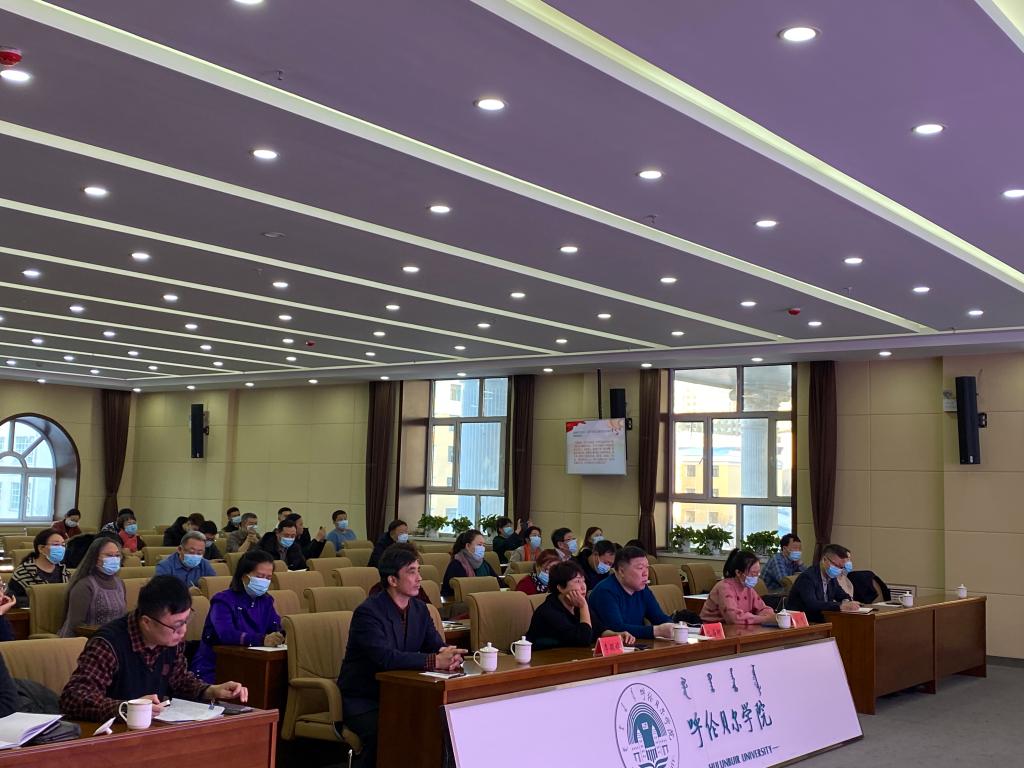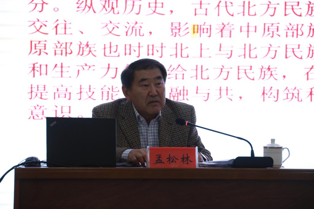 12月11日上午,永利yl23411集团官网邀请中国社科院蒙古族源研究中心常务副主任孟松林教授在崇文楼A201会议室做了“纵观历史 深刻理解铸牢中华民族共同体意识”的专题讲座。呼伦贝尔学院副校长敖特根;科学技术处处长田振江;呼伦贝尔市文旅广局党组成员、副局长包海明;呼伦贝尔市文旅广局非遗科科长李颖婷;呼伦贝尔市文旅广局非遗科四级主任科员潘斐;民族历史文献中心主任斯仁巴图;及各学院负责人、教师代表参加了讲座。讲座由副校长敖特根主持。