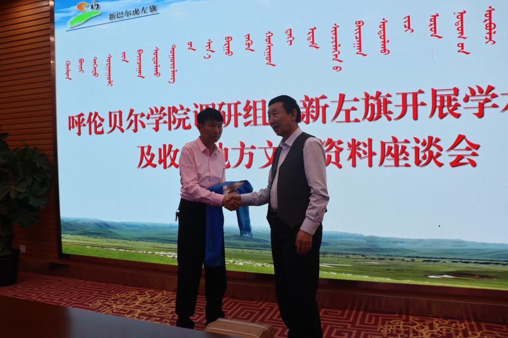 调研组在旗市政协领导和文史委员会同志们的大力支持下,收集了蒙汉文地方性文史资料200余册,并向其赠送了研究中心近几年出版的呼伦贝尔学院民族历史文化研究丛书等学术成果,拜访慰问了相关本土专家和文化界名人,还观看了当地的文史馆、博物馆和民族团结进步展览等。