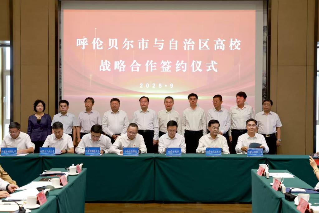 9月11日,呼伦贝尔市与自治区高校战略合作座谈会在呼和浩特召开。会上,呼伦贝尔市与内蒙古大学、内蒙古师范大学、内蒙古农业大学、内蒙古工业大学、内蒙古科技大学、内蒙古医科大学、内蒙古财经大学、包头医学院、内蒙古艺术学院等9所高校签署战略合作协议。市委书记王旺盛,自治区教育厅党组成员杨玉春,市领导王猛、孙微出席并见证签约。永利yl23411集团官网党委书记李文阁,校党委副书记、校长张玉柱及相关职能部门负责人参会。