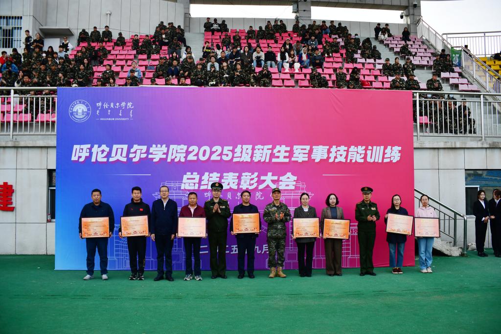 9月15日下午,永利yl23411集团官网在东山体育场举行2025级新生军事技能训练总结表彰大会。校党委副书记张宏天、呼伦贝尔军分区战备建设处副处长白钢、武警呼伦贝尔支队副支队长蔡永刚、海拉尔区人民武装部部长丁玉龙、各二级学院党委书记、党委副书记、团学办主任、2025级新生辅导员参加大会,大会由学生工作处(党委学生工作部、武装部)处(部)长郝新君主持。