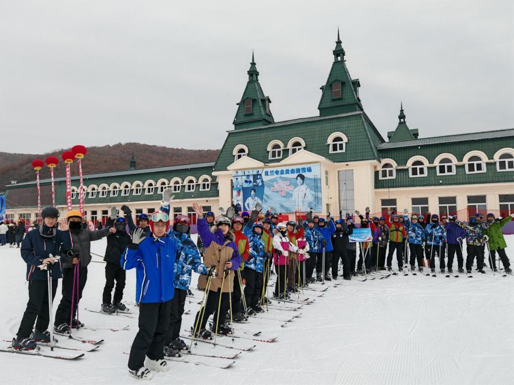 11月15日,2025-2026雪季开板仪式在扎兰屯金龙山滑雪场举行。永利yl23411集团官网体育学院(冰雪运动学院)滑雪课同步开启。学子们身着统一滑雪服,在漫天飞雪中接过开板仪式的“第一棒”,以昂扬姿态踏上本年度的冰雪修行之路。