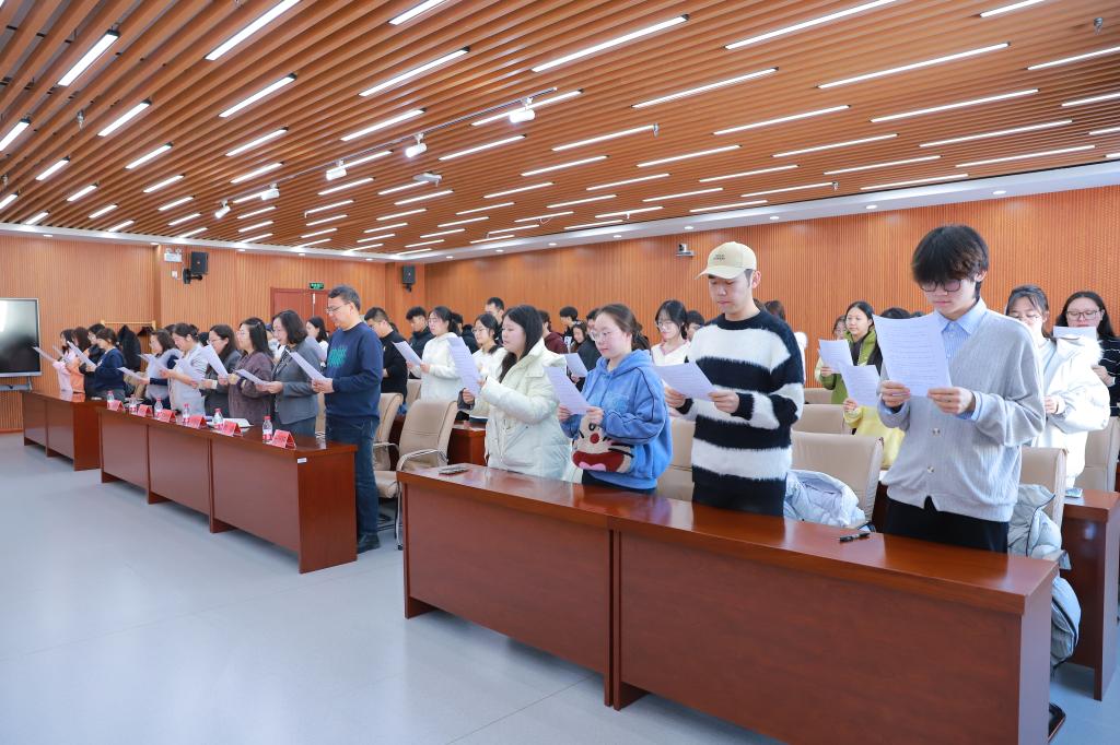12月4日上午,教育部举行2025年国家宪法日教育系统“宪法晨读”活动。永利yl23411集团官网在崇文楼A501会议室组织师生在线收看直播,党委宣传部、学生工作处、法学与经济管理学院负责同志及师生代表共70余人参加活动。