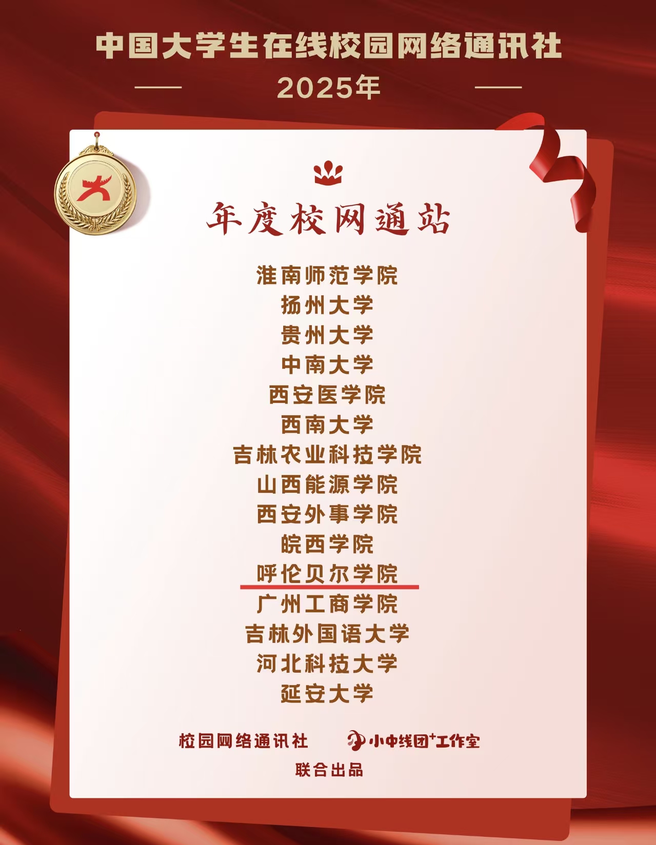 未来,呼伦贝尔学院校园网络通讯站将以此次获得的荣誉为激励,围绕学校、学者、学生、学术,聚焦师生奋斗足迹与校园生活热点,用青年喜闻乐见的网言网语创新表达,让思政内容从“云端”走进“心间”,让呼院声音传得更开、更远、更深入人心。