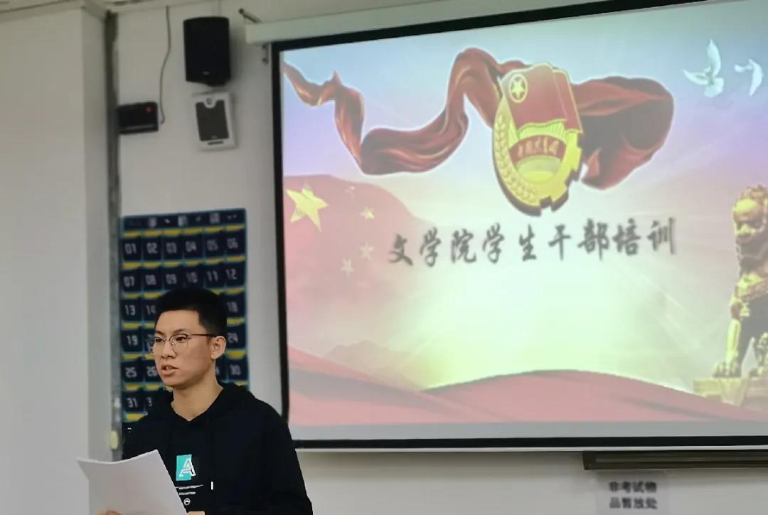为遵循和贯彻党的教育方针,团结和引导同学成为热爱祖国,做中国特色社会主义事业要求的合格人才,树立和践行社会主义核心价值观,11月9日,文学院在崇文楼B506对学生干部开展学习《习近平总书记致全国青联第十三届全委会和全国学联第二十七次代表大会的贺信》的培训。主讲人为文学院学生会主席苗雨威同学,文学院学生会全体学生干部参加本次培训。
