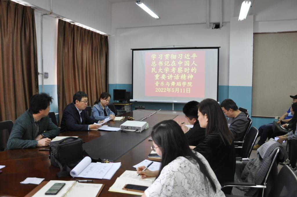 5月11日,音乐与舞蹈学院组织全体教职工学习贯彻习近平总书记在中国人民大学考察时重要讲话精神。音乐与舞蹈学院党总支书记李雅杰主持学习会。