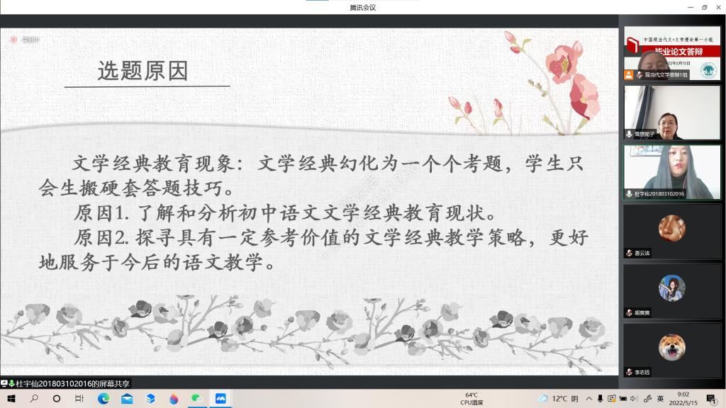 根据《呼伦贝尔学院本科毕业生论文〈设计〉管理规定》、《文学院2022届毕业生毕业论文答辩工作安排》及疫情防控的相关要求,5月16日至5月27日,文学院有序开展了线上论文答辩工作。