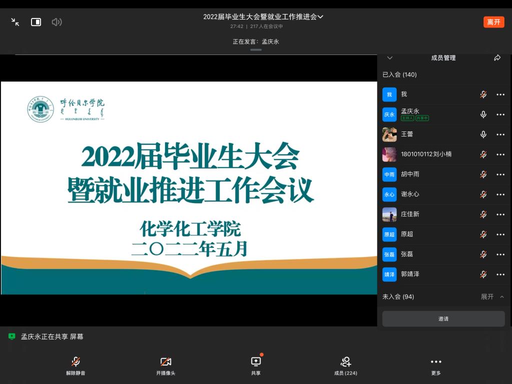 根据《呼伦贝尔学院2022届毕业生就业促进周工作安排》相关要求,化学化工学院领导班子和学生工作队伍积极落实2022届毕业生就业推进工作,积极对接企业,为毕业生拓宽就业渠道,认真开展就业指导服务,推进学生就业。3月份至今,化学化工学院共计联合6家企业开展线上招聘会8场次,召开就业指导主题班会3场次,新开发注册学校就业信息网企业6家;同时,化学化工学院召开了2022届毕业生大会暨就业工作推进会议,对考研和就业情况进行了通报,引导学生改变就业思想,鼓励学生“先就业,再择业”。5月8日,化学化工学院组织2022届毕业生参加“人社局长进校园”直播宣传活动,召开毕业班辅导员、班主任就业指导主题班会,进一步推进毕业生就业工作。5月11日,学校党委副书记、校长李文阁带队赴陈巴尔虎旗访企拓岗,化学化工学院党总支书记艾丽随同调研;期间,一行深入呼伦贝尔金新化工有限公司、呼伦贝尔东能化工有限公司对接合作,达成合作意向。
