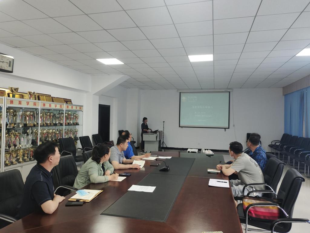 6月24日上午,体育学院在田径场二楼会议室召开新进博士教师入职报告会,会议由体育学院院长李晓峰主持。班子成员、各系部主任及相关专业教师共计10余人参加。