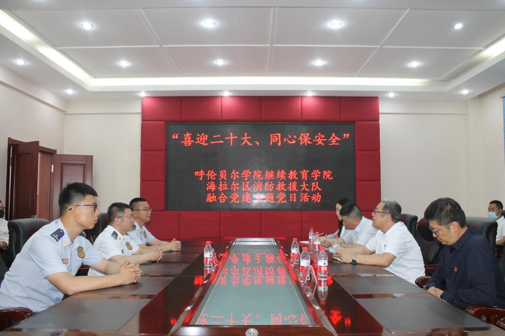 为进一步增强消防安全意识,提高抵御紧急突发事件的能力,零距离接触消防、感受消防、体验消防,6月28日上午,在“七一”建党节来临之际,继续教育学院直属党支部全体党员到河东海拉尔区消防救援大队参观学习并与海拉尔区消防救援大队全体党员指战员联合开展“喜迎二十大同心保安全”融合党建主题党日活动。