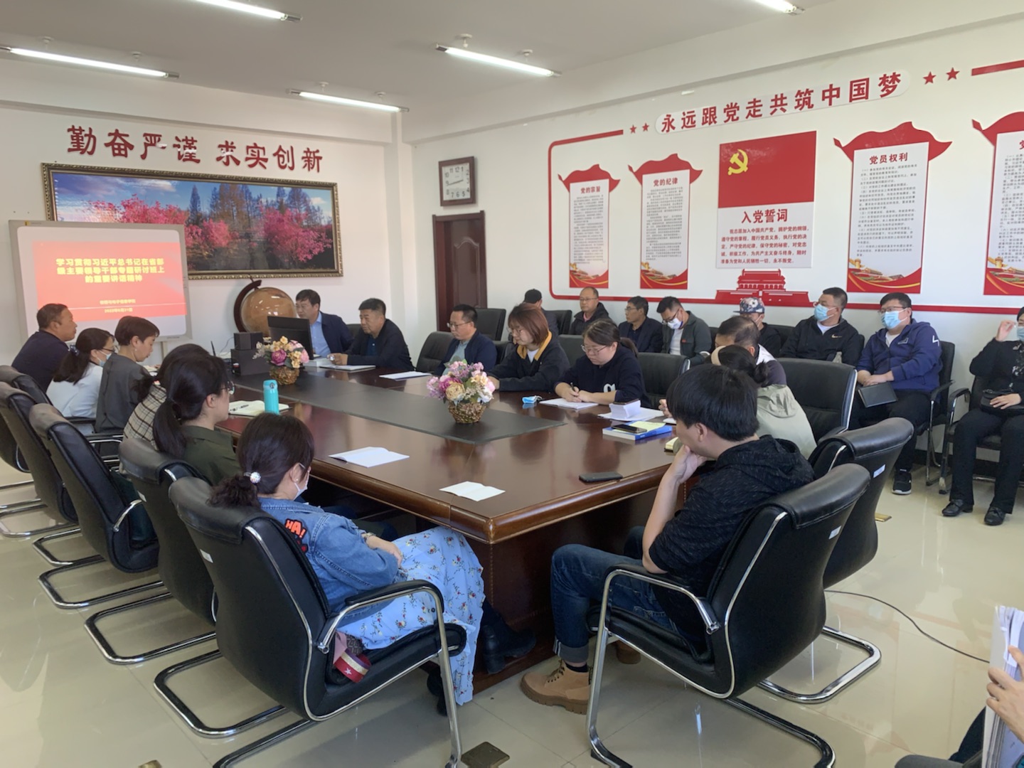 8月31日下午,物理与电子信息学院全体教职工在科技楼301会议室召开政治理论专题学习会,会议由党总支书记红峰主持。
