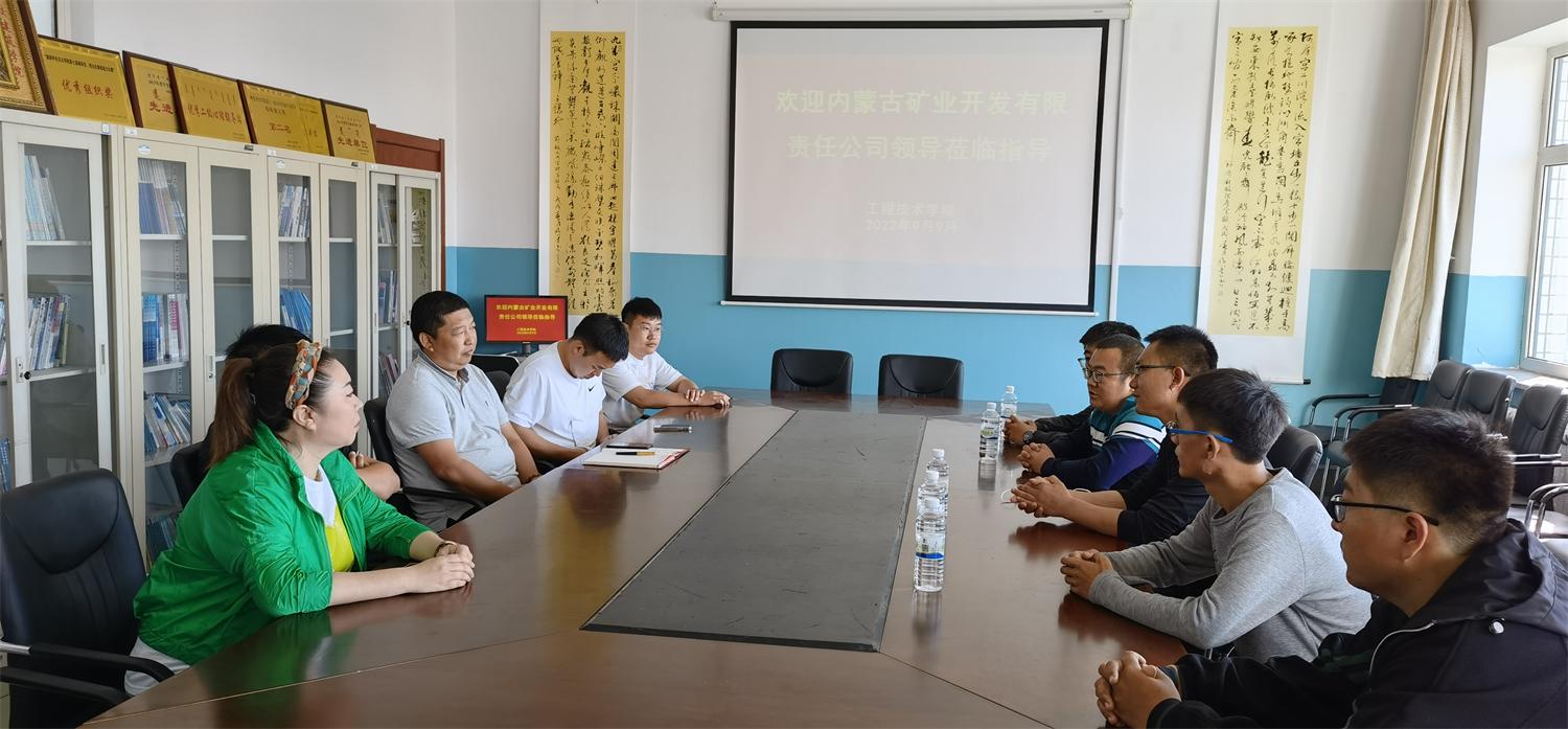哈达副书记代表学院对内蒙古矿业开发有限责任公司对学院的信任表示感谢,感谢企业为学生提供实习、就业及锻炼的机会。并简要介绍了学院基本情况,询问了用人单位对学院毕业生的一些意见和建议。以期为企业输送更多用人单位满意的人才。