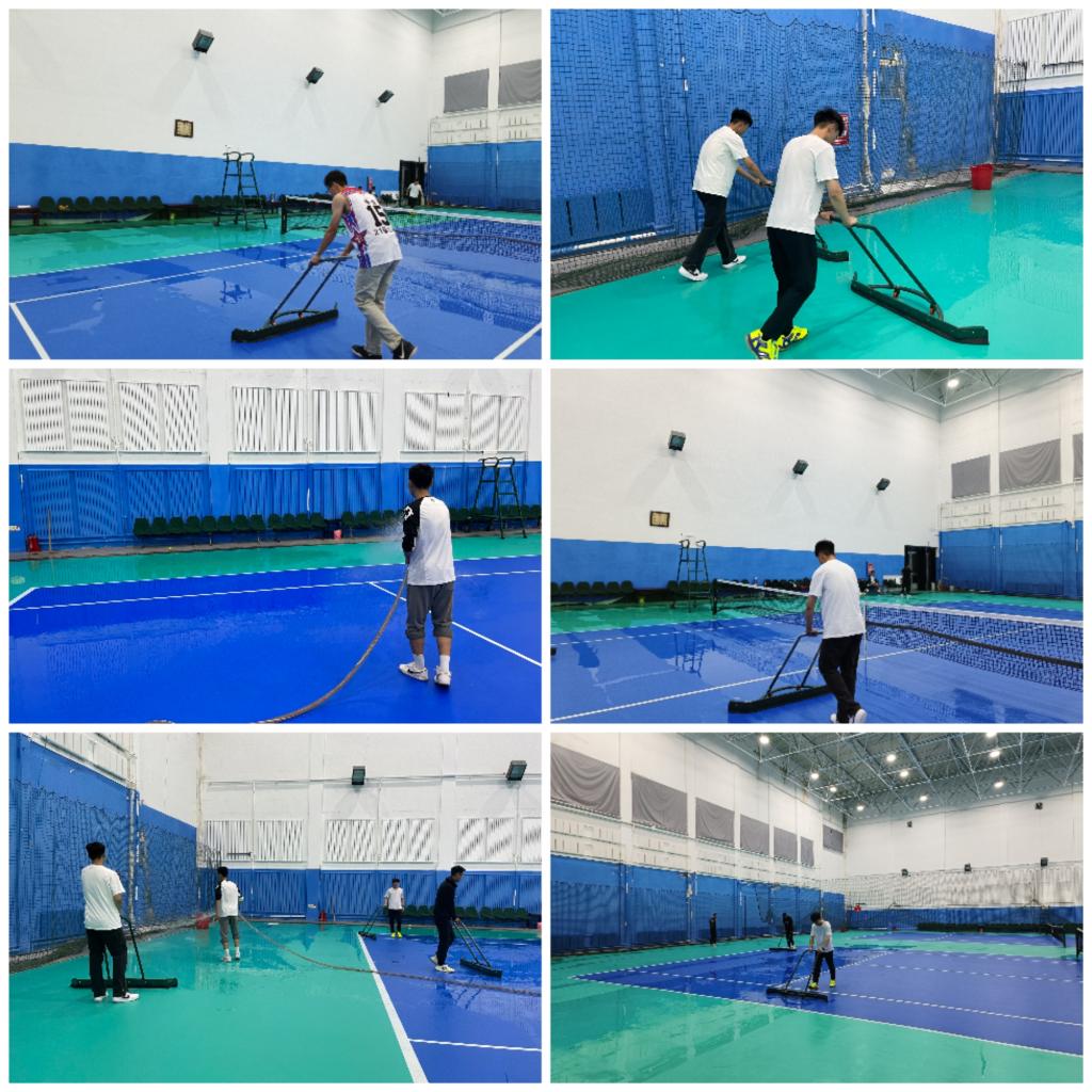 活动中,学生们来到网球馆,积极踊跃地开展志愿服务。在劳动过程中,学生们认真清扫地面,并用水反复冲刷,最后用专业场地清理器仔细清理场馆场地每个角落。整个志愿服务活动过程分工明确、井然有序,充分展现了他们不怕脏、不怕累,积极奉献的精神风貌。