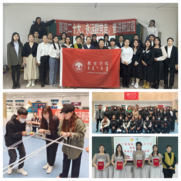 为庆祝中华人民共和国成立73周年,迎接党的二十大胜利召开,10月1日上午,教育学院在艺术楼方厅开展了“喜迎二十大 永远跟党走 奋进新征程”趣味国庆活动。党总支副书记海江,团学办主任吴怡及李晗、揭娜两位教师参加。