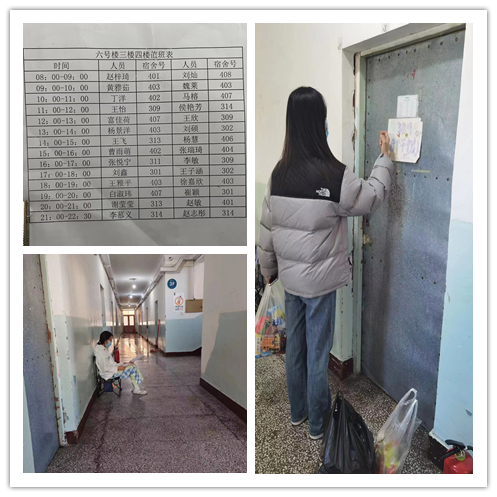 由于校园疫情防控形势严峻,部分学生处在居舍隔离状态,无法完成打饭、购物等外出活动,学院建立了一帮一“隔离不隔情,帮扶暖人心”服务。每个寝室每天都会有一到两名学生去食堂为其他同学带每日三餐,确保寝室里的每位学生都能吃到营养均衡的餐食,成为五星好评的“跑腿王”。