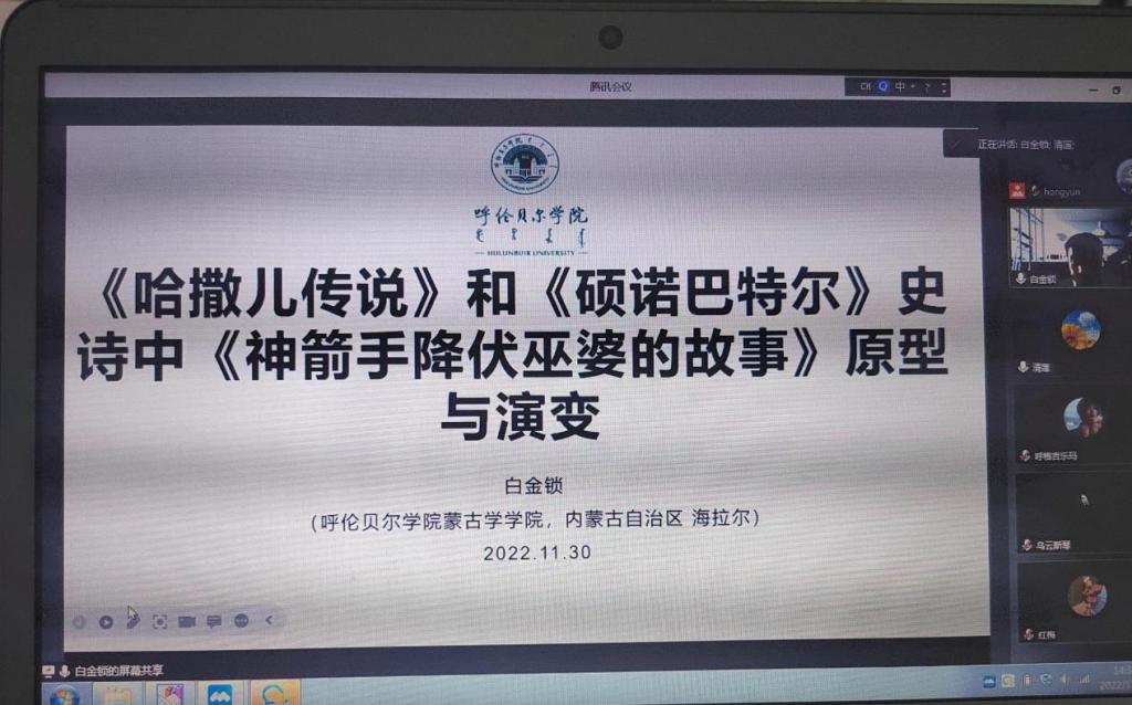 11月30日下午,蒙古学学院在线上开展了学术讲座。讲座由学院蒙古语言文学系主任清莲主持,全体教师聆听了本次讲座。