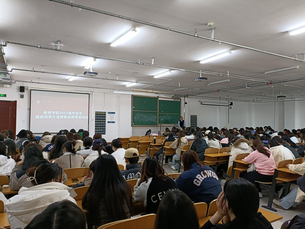 为帮助学生树立正确的就业观,促进毕业生高质量就业,3月16日,教育学院召开了由学院党总支副书记海江主讲的就业政策宣讲会,小学教育专业和学前教育专业2023届毕业生参会。