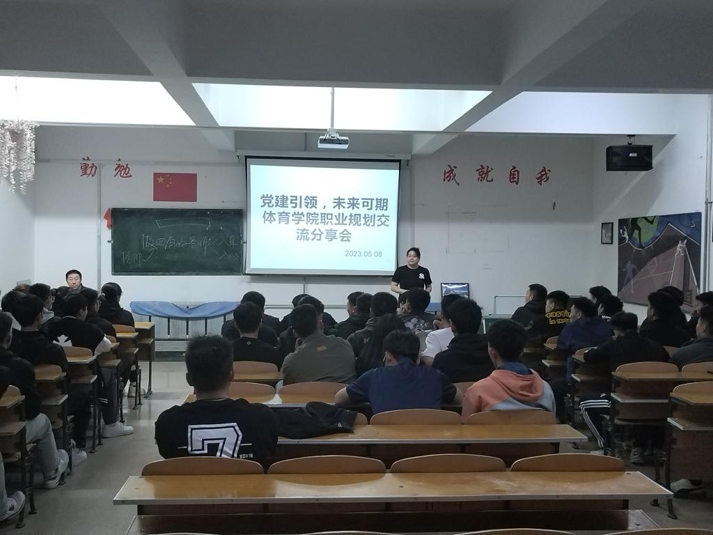 为帮助学生们合理规划自己的职业,回应学生就业方面疑惑,5月8日晚,体育学院学生支部在山下体育馆多媒体教室,组织开展了职业规划交流分享会。学院党总支书记胡日查、体育教育系副主任姜莹、2020级全体学生参会。