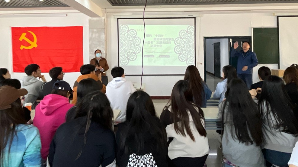 会上,肖慧英主任为大家介绍了“十四冬”的相关信息,并着重介绍了志愿者要承担开幕式、闭幕式和场馆、竞赛、礼仪接待等方面的志愿服务。肖慧英主任鼓励学生们积极参与此次志愿活动,给自己一个别样的冬天。