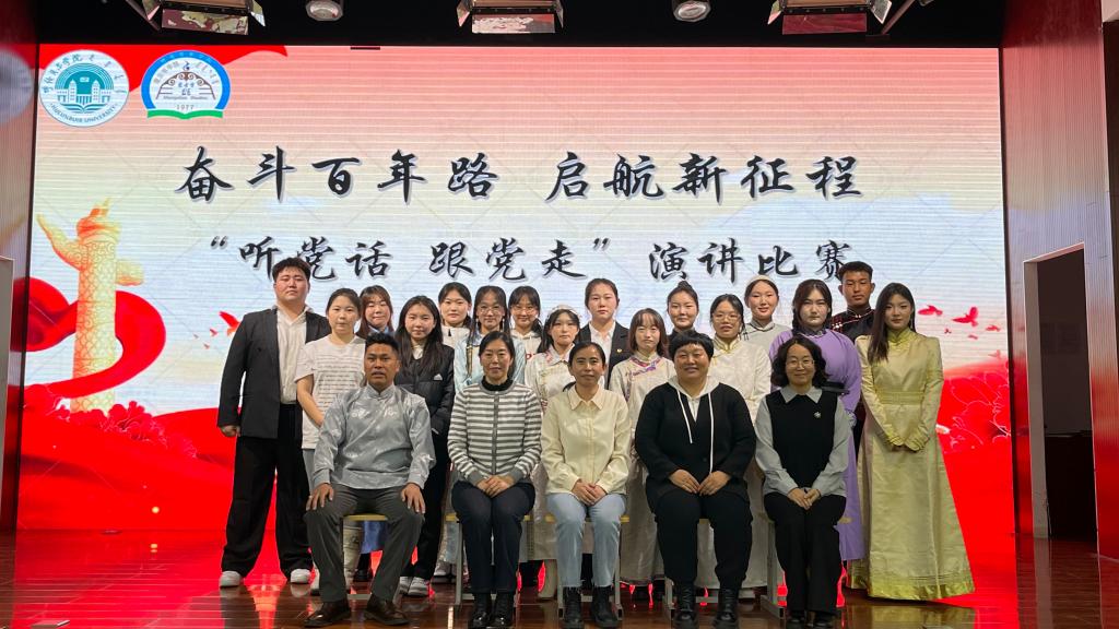 为进一步激发广大青年学生的爱国热情与奋斗精神,11月16日晚,蒙古学学院在崇文楼B小剧场举办了以“奋斗百年路,启航新征程——听党话、跟党走”为主题的演讲比赛。学院党总支副书记孔春艳、系主任包萨如拉、教师特古斯朝克图、银花、阿拉坦花等担任评委,140余名学生观看比赛。
