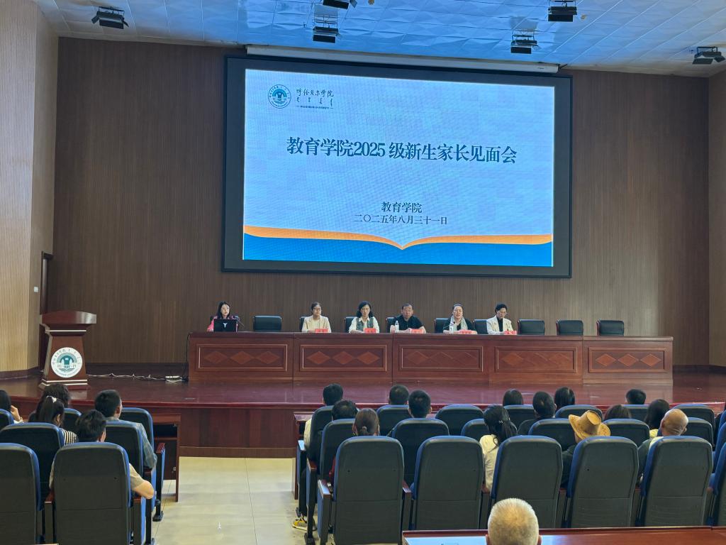 为了构建家校沟通的桥梁,进一步加强学校与家长之间的密切联系,教育学院于8月31日上午,在图书馆四楼报告厅召开2025级新生家长见面会。学院班子成员、各系部主任、2025级全体新生辅导员、2025级新生家长参加会议。