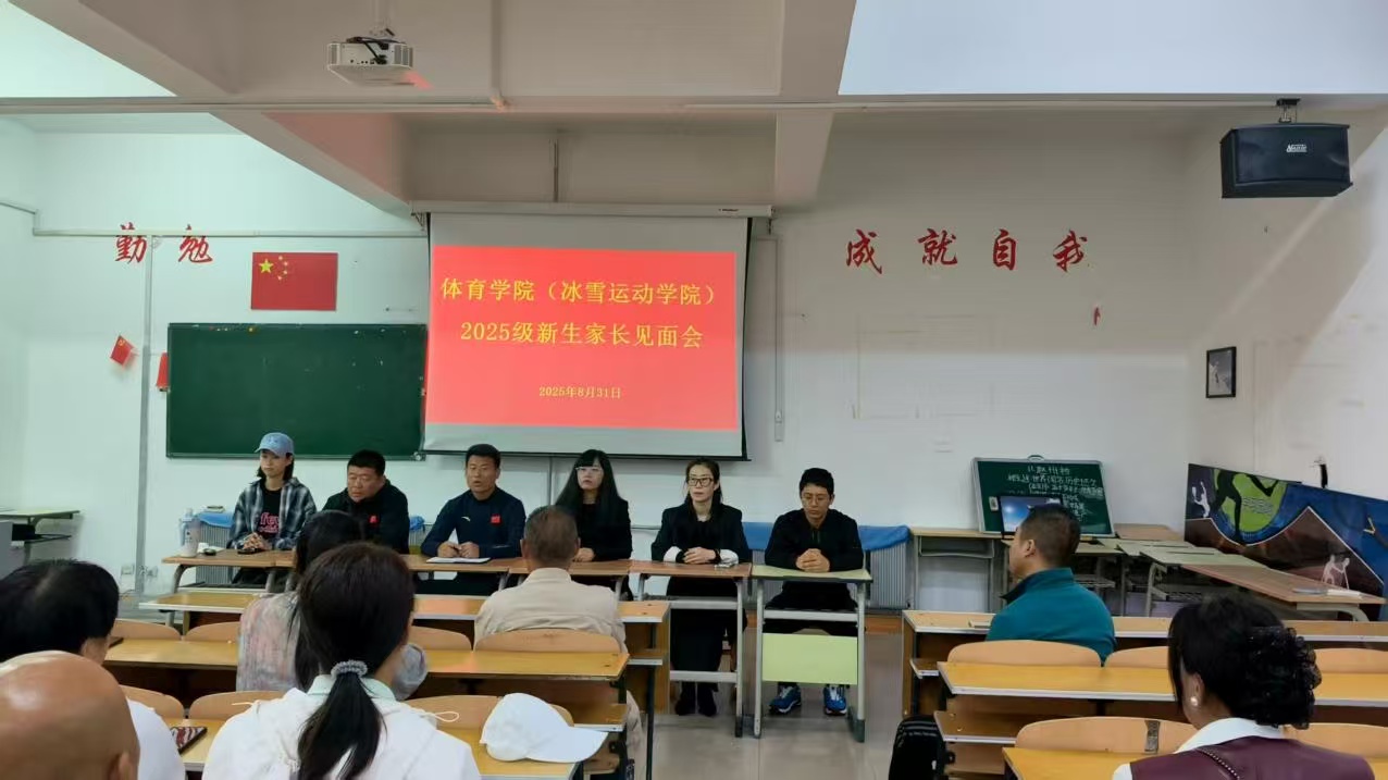 为帮助学生家长全面了解学院办学特色、育人体系及校园生活环境,凝聚家校育人合力,8月31日下午,体育学院(冰雪运动学院)在山下体育馆二楼多媒体教室召开2025级新生家长会。学院党委副书记凌占一、团学办主任卜祥云、副主任张娜娜、2025级新生辅导员、班主任及新生家长们共同参加了此次会议。