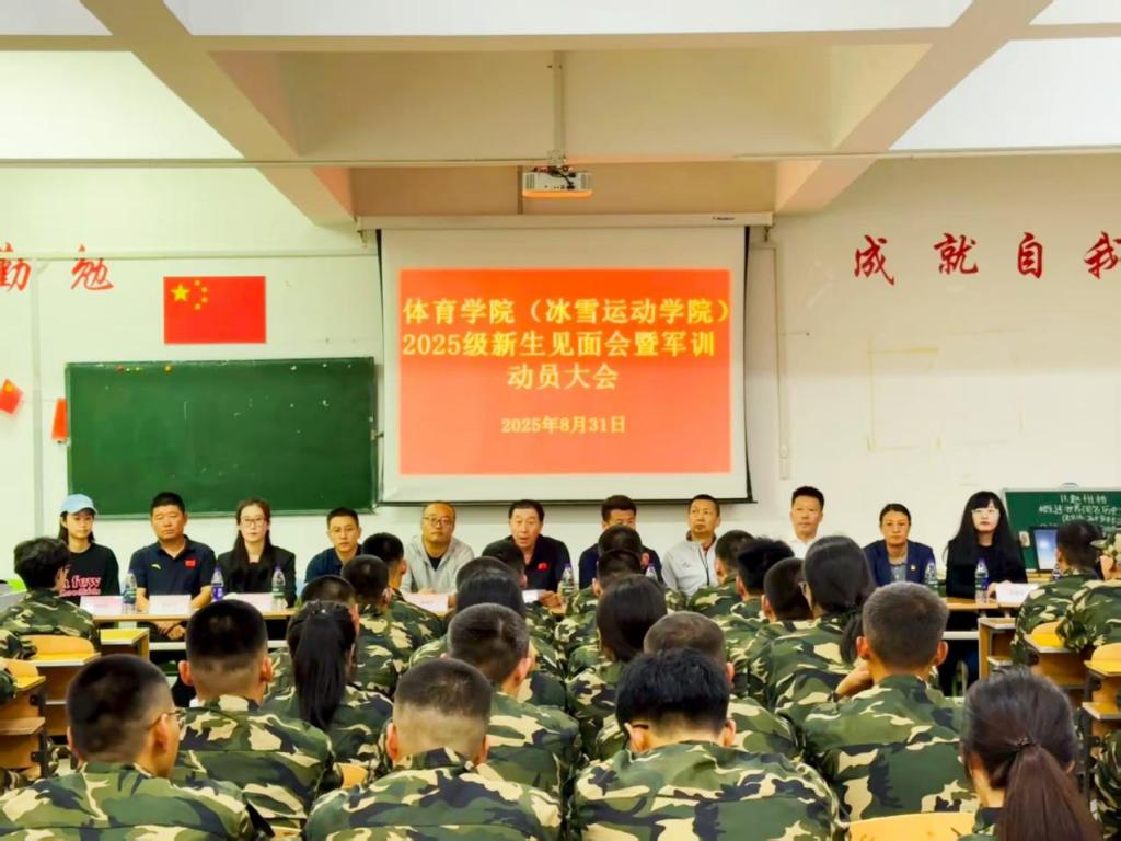 8月31日下午,体育学院(冰雪运动学院)召开了“凝聚青春力量,铸就体院荣光——迎新启程,军训扬帆”为主题的新生见面会暨军训动员大会。学院党委书记胡日查毕力格、党委副书记凌占一、副院长林剑冬,学院环节干部、辅导员班主任、军训教官和全体2025级新生参会。会议由团学办主任卜祥云主持。