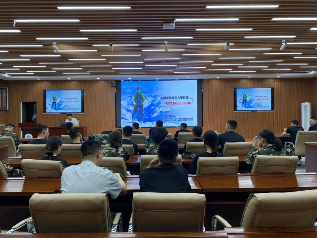 为勾勒未来专业学习的蓝图,助力学生快速融入冰雪运动专业的学习氛围,9月3日晚,体育学院(冰雪运动学院)冰雪运动系主任王荣林在崇文楼A501会议室,为2025级冰雪运动专业新生开展冰雪运动专业人才培养方案解读会。