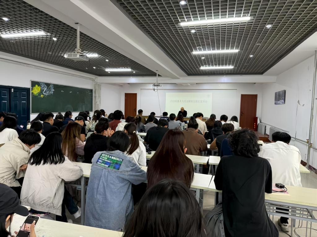 会上,何锡彭对美术学院美术与书法专业学位授权点的建设成果进行了系统回顾,重点展示了学院在师资队伍建设、科研创新、实践教学等方面取得的突破性进展。随后,他结合当前国家教育政策与研究生招生趋势,对美术与书法专业研究生招生政策进行了深度解析,全面阐释了学院的学科优势与人才培养特色,为在场学生明晰了报考本院研究生的核心竞争力。何锡彭强调,学院将针对美术与书法专业人才培养特点,对研究生初试考核内容进行优化调整,强化专业素养与实践能力的考察比重,使选拔机制更契合学科发展需求;指出研究生阶段的学习不仅能有效拓展就业领域,更是响应国家教育发展战略、适应未来社会需求发展的必然路径。他以详实的数据与案例,生动诠释了高层次学历对职业发展的深远影响,激励学生把握机遇,积极投身考研备考。