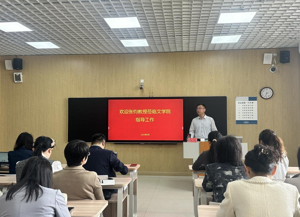 当日下午,张钧在崇文楼B502教室作了题为《学科建设新动态、新视野下理论与实践相结合的课程体系建设研究》的讲座,学院领导班子成员及全体教职工参加聆听。张钧以《教师口语》课程建设为例,从课程定位、教学组织、教学资源三个方面,深入剖析了课程体系建设的关键要点。他特别强调了课程思政在《教师口语》课程中的全方位融入,从日常教学案例中提炼思政要点,引导学生树立正确价值观,真正做到全过程课程思政铸魂。