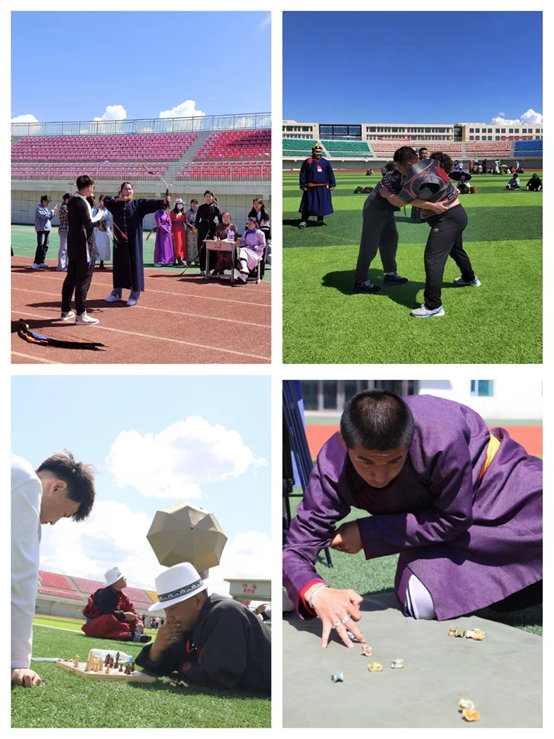 赛场上,参赛选手在搏克、蒙古象棋、弹沙嘎和射箭等四项蒙古族传统体育项目中进行了激烈角逐。搏克比赛分男子组和女子组,男子组有64名学生参赛,女子组有8名学生参赛。经过激烈的角逐,最终,教育学学院毕力格巴特尔获男子组第一名,教育学学院萨茹拉获女子组第一名。沙嘎比赛有56名学生参赛,最终旅游与地理学院巴亚斯呼愣获得第一名。蒙古象棋比赛中,选手们在方寸之间进行智慧与谋略的博弈,最终,教育学学院苏都伊利拉塔获得第一名。弓箭比赛有32名选手参赛,最终,文学院的阿义拉古获得第一名。