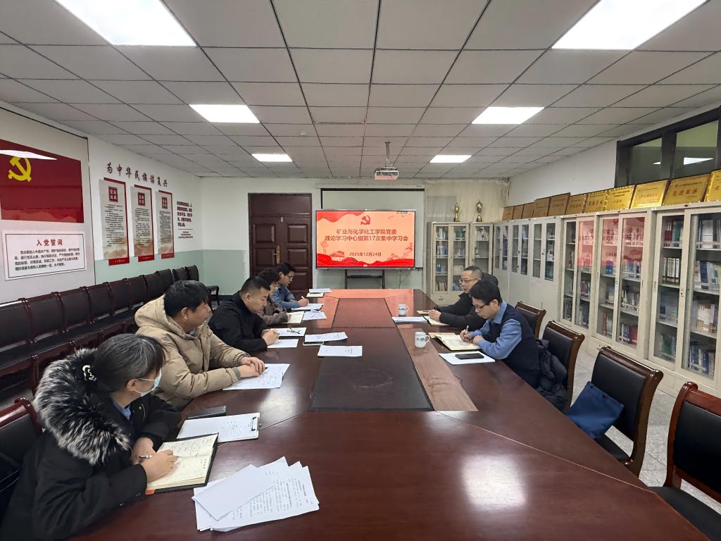12月24日,校党委副书记、校长张玉柱深入矿业与化学化工学院开展党委理论学习中心组学习巡听旁听工作。矿业与化学化工学院领导班子成员、党委委员、学生党支部书记参会,学习会由矿业与化学化工学院党委书记张阳主持。学习会以“深入贯彻一体推进教育科技人才事业发展新思想、新战略,推动学院教育科研人才培养高质量发展”为主题。会上,张阳首先领学了党的二十届四中全会精神、《中共中央关于制定国民经济和社会发展第十五个...
