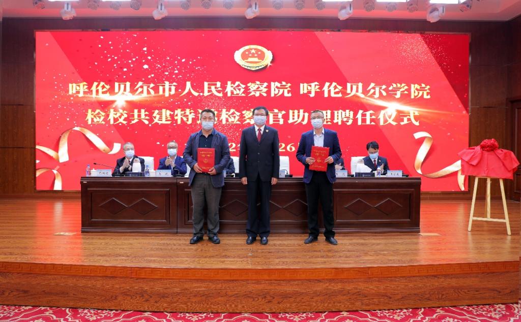 会上,李文阁校长和秦虎检察长共同签署了《检校共建协议书》《呼伦贝尔市民事行政公益诉讼检察综合研究基地合作协议书》,并为呼伦贝尔市民事行政公益诉讼检察综合研究基地揭牌。