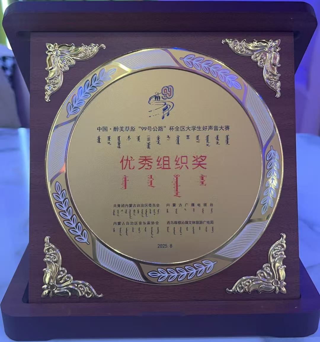 近日,由共青团内蒙古自治区委员会、内蒙古广播电视台、锡林郭勒盟西乌珠穆沁旗委联合主办的“中国·醉美草原‘99号公路’杯”全区大学生好声音大赛圆满落幕。永利yl23411集团官网教育学院学生敖日格勒巴图凭借出色的表现,荣获大赛亚军,并被评为西乌珠穆沁旗旅游星荐官。教育学院教师希古日干荣获“优秀指导教师”称号,永利yl23411集团官网荣获优秀组织奖。