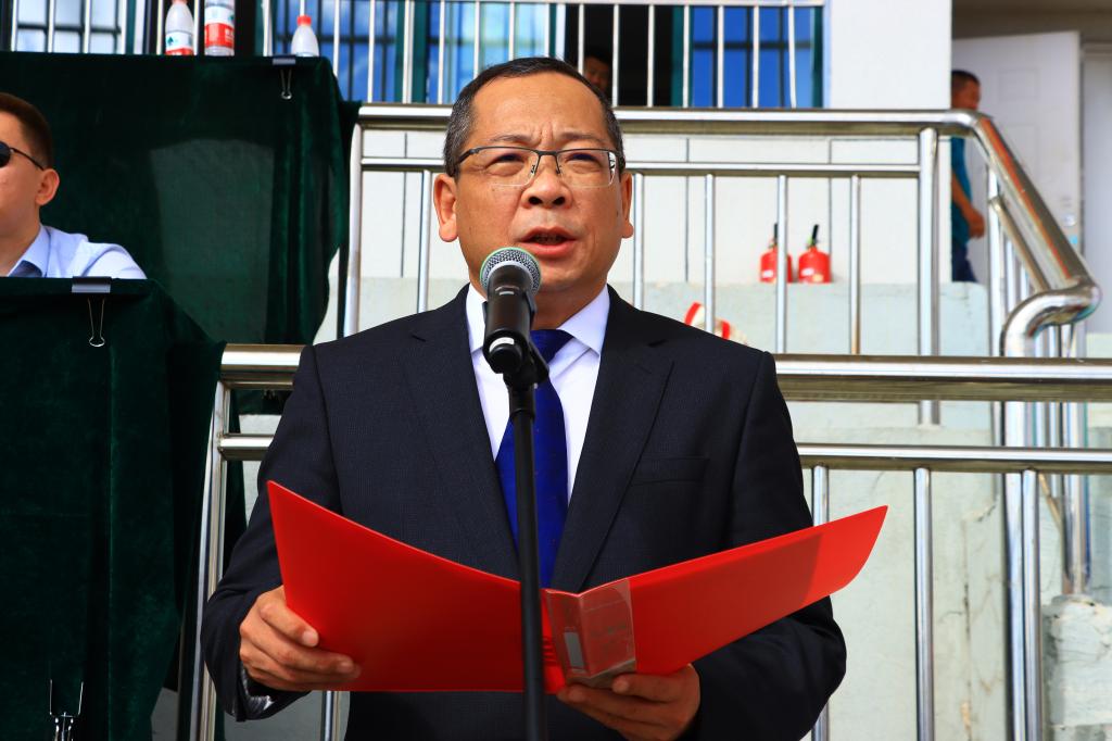 校党委副书记、校长张玉柱代表学校致辞,他向3550名2025级新生表示了热烈的欢迎,并向辛勤培育新生成长成才的老师和家长致以衷心的感谢,以及向承担此次军训任务的武警呼伦贝尔支队官兵和教官们表示诚挚的敬意。他对新生提出了希望:要把准人生坐标,让青春在明德立志中熠熠闪光;要锤炼硬核本领,让青春在破局攻坚中茁壮成长;要锻造钢铁纪律,让青春在集体熔炉中淬火成钢。他寄语同学们,愿他们在这片充满希望的土地上挥洒青春汗水,绽放光彩,为实现个人价值、推动学校发展、助力国家富强贡献自己的智慧与力量。
