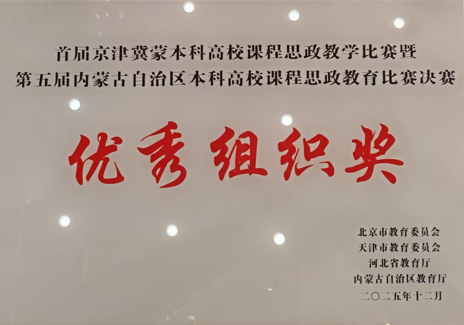 12月21日,首届京津冀蒙本科高校课程思政教学比赛暨第五届内蒙古自治区本科高校课程思政教学比赛圆满落幕。经过激烈角逐,永利yl23411集团官网法学与经济管理学院尹秀英、外国语学院敖斯其其格、教育学院强健三个教师团队凭借扎实的教学功底与精妙的教学设计,分别斩获专业教育课程组、公共基础课程组、实践类课程组二等奖,学校因组织得力、成效显著,荣获“优秀组织奖”。