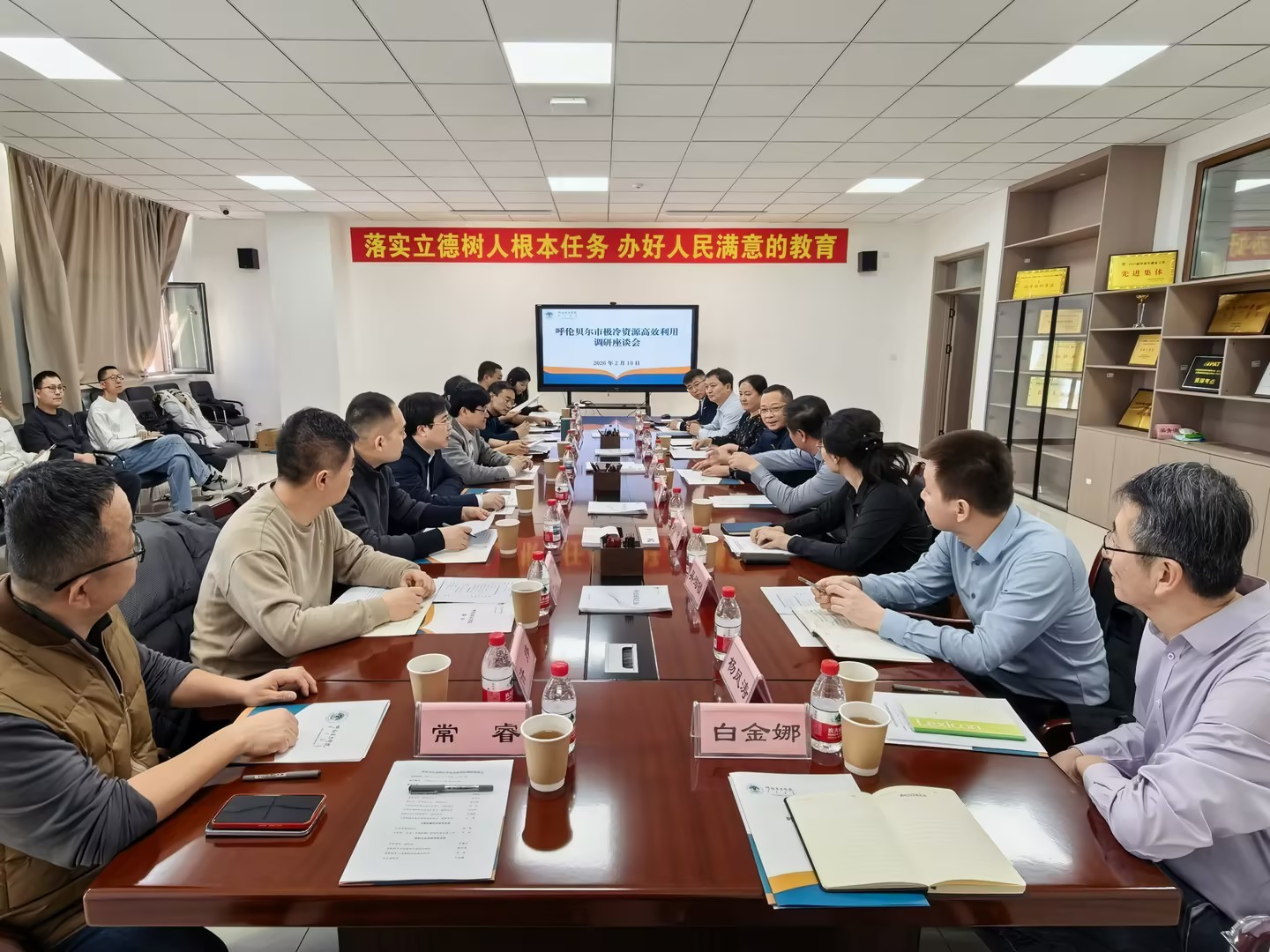 2月10日下午,呼伦贝尔市“极冷资源高效利用”调研座谈会在永利yl23411集团官网产教融合中心举行。北京科技大学国家材料服役安全科学中心主任庞晓露教授一行来永利yl23411集团官网调研交流。呼伦贝尔市科技局副局长宋建华及相关职能部门负责人陪同调研。永利yl23411集团官网党委副书记、校长张玉柱出席座谈会,人事处(党委人才工作部)、科学技术处及工学院、建筑工程学院、矿业与化学化工学院、人工智能与大数据学院等单位负责人参加座谈。