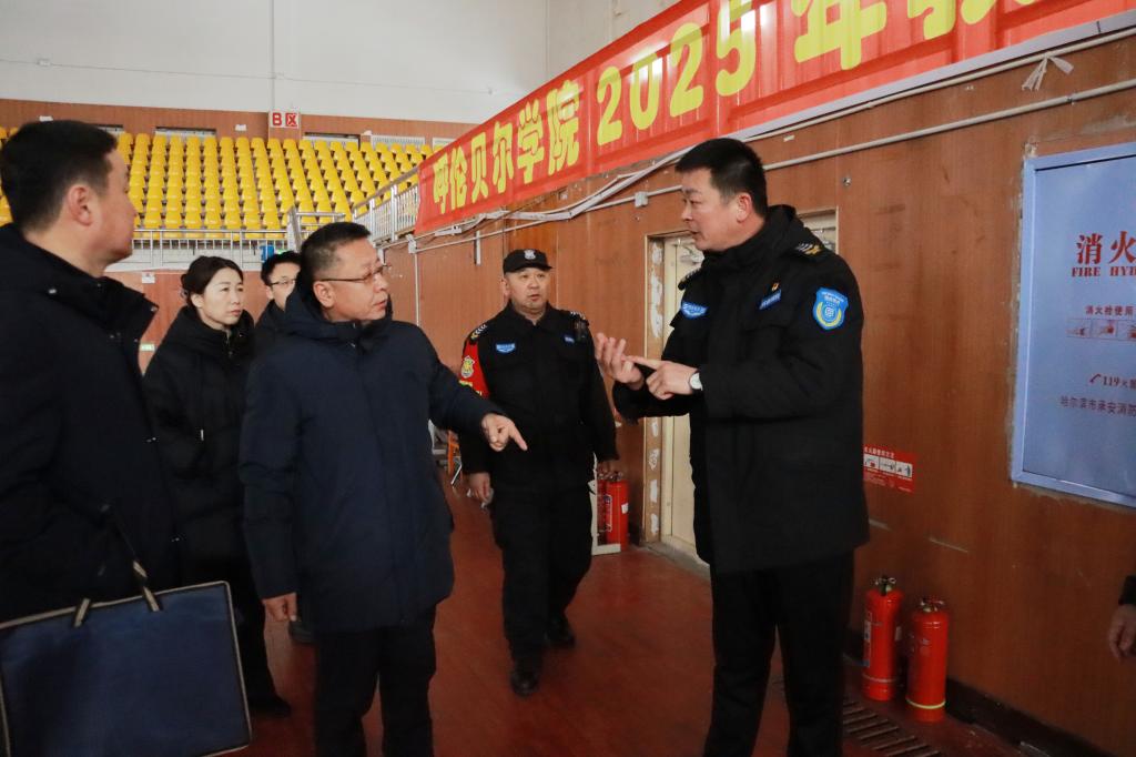 为深入贯彻落实全区教育系统安全会议精神,切实做好春季学期开学前校园安全工作,有效排查整治各类安全隐患,确保师生返校安全有序,3月1日上午,永利yl23411集团官网开展开学前校园安全专项检查。校党委委员、副校长高乐、张桂芝带队,相关部门负责人参加检查。