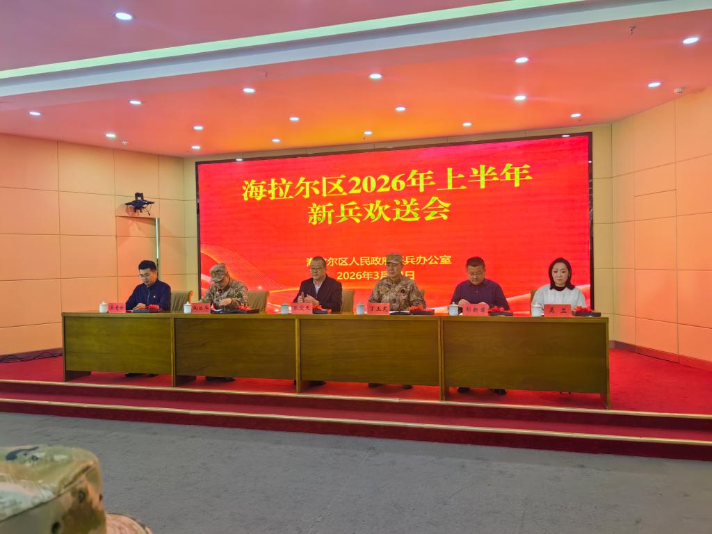 3月13日,海拉尔区2026年上半年新兵欢送仪式在永利yl23411集团官网崇文楼A201会议室举行。校党委副书记张宏天,海拉尔区人民武装部部长丁玉龙、政委向治华,呼伦贝尔职业技术学院学生工作处处长吴青松,永利yl23411集团官网学生工作处(党委学生工作部、武装部)处长(部长)郝新君,新兵家属、辅导员及呼伦贝尔学院国防实践团成员等90余人齐聚一堂,为22名应征入伍的青年送行。仪式由向治华主持。