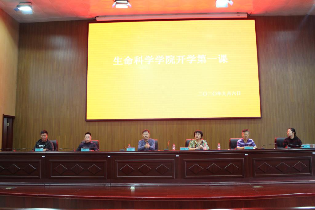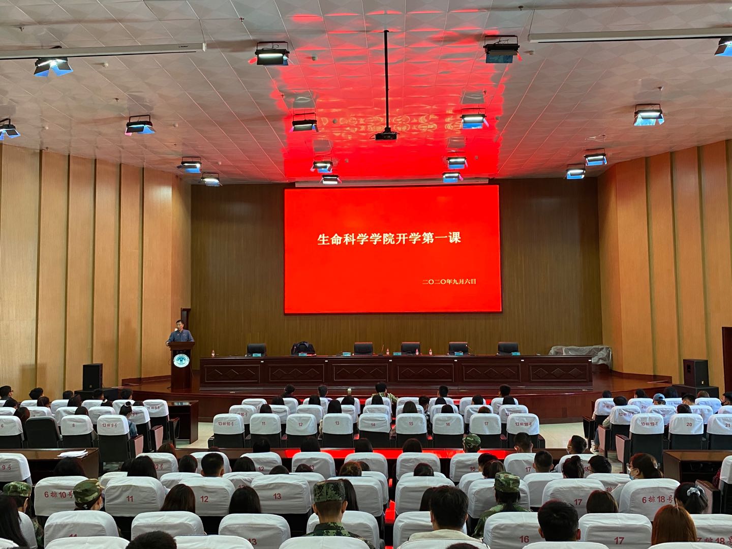 9月6日下午,生命科学学院在图书馆四楼报告厅举办新学期“开学第一课”活动。参加此次会议的有党总支书记白国林、院长谢宾、副书记张玉桩、副院长高明华、团学办主任赵天翔、辅导员杨希及全体学生。