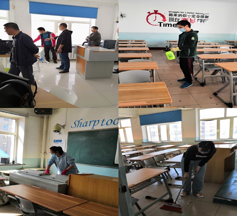 为了迎接学生返校,给学生营造一个健康、卫生、温馨的教学环境,外国语学院各环节干部,辅导员,教研室主任在开学前对外院楼的所有教室,走廊,办公室进行了清扫和消毒,并检查了教室的教具,投影仪等仪器设备,确保开学后的教学正常进行。