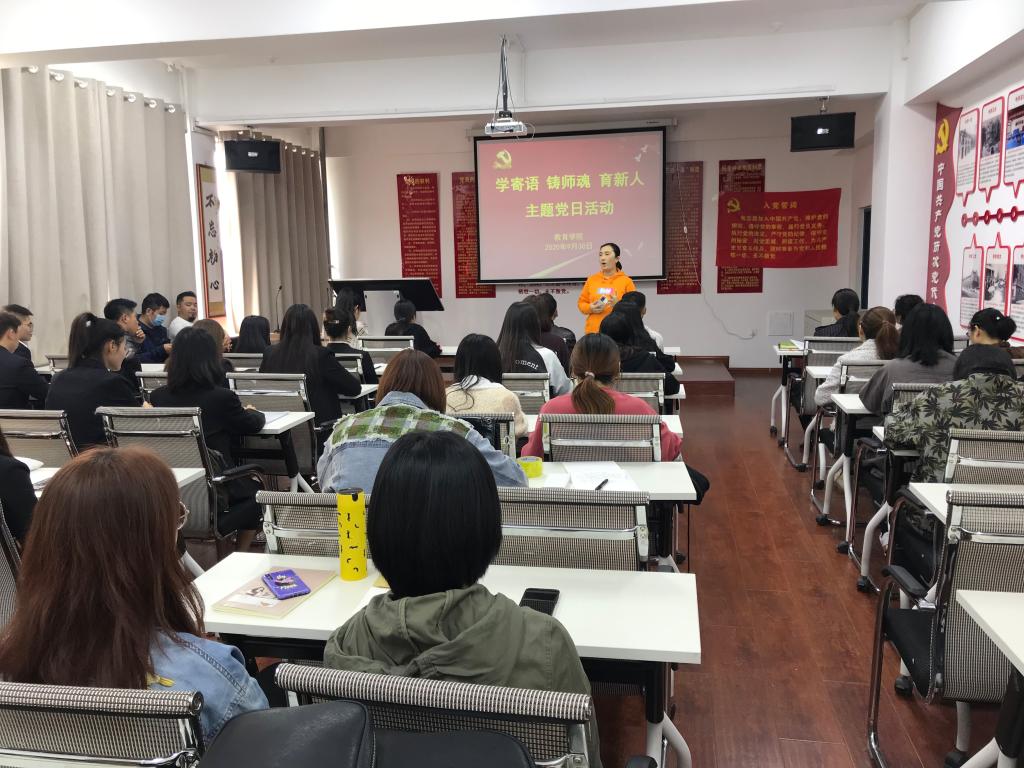 9月30日下午,教育学院党总支所属学前教育系、心理系、小学教育系、学生党支部分别在艺术楼210、404、403、501教室开展“学寄语、铸师魂、育新人”主题党日活动。