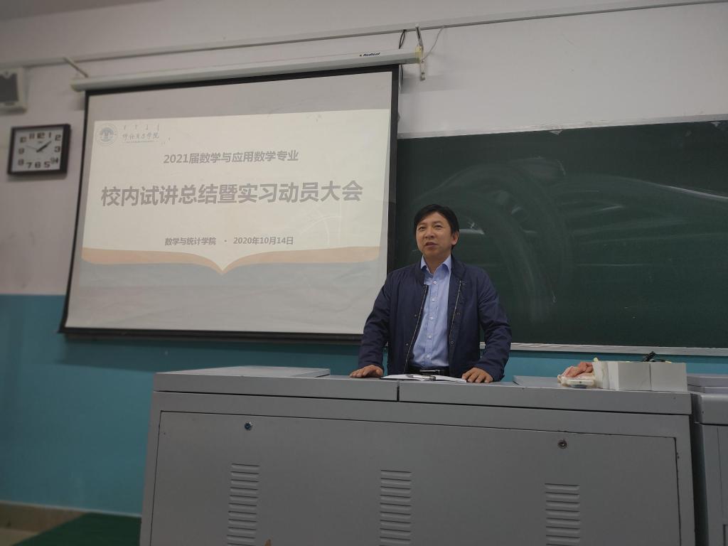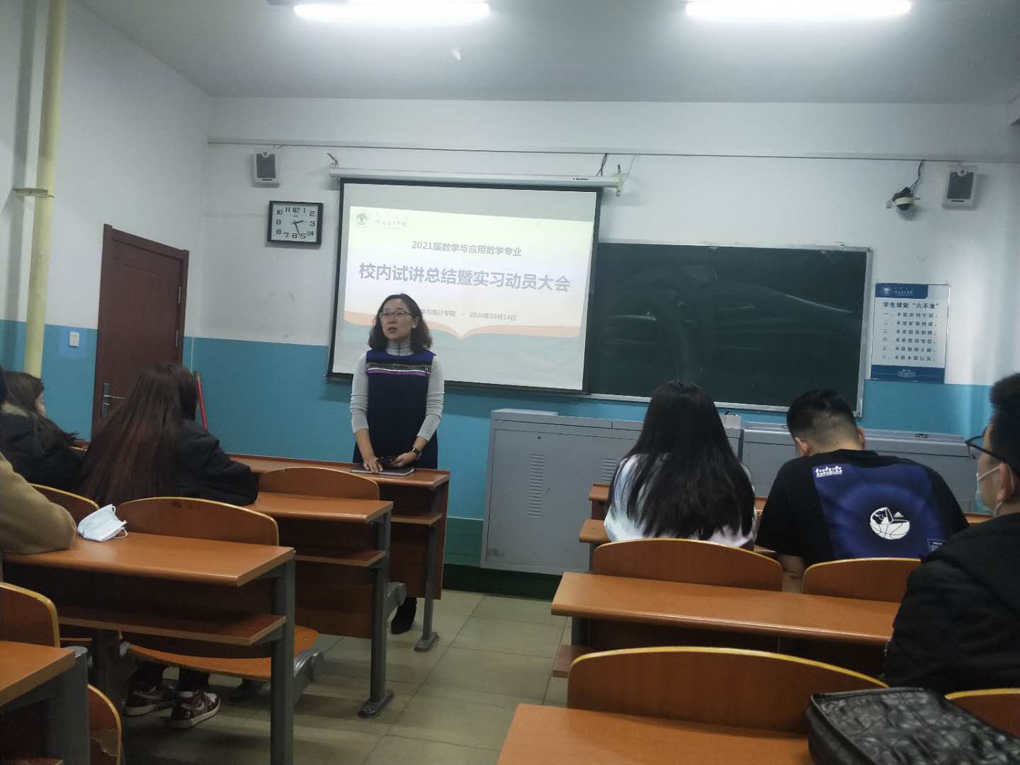 为全面落实师范生教育实习工作,使学生了解教育实习的主要目的、内容以及注意事项。10月14日下午,数学与统计学院在笃学楼311组织召开2021届数学与应用数学(师范)专业实习动员会,会议由吴红艳老师主持。