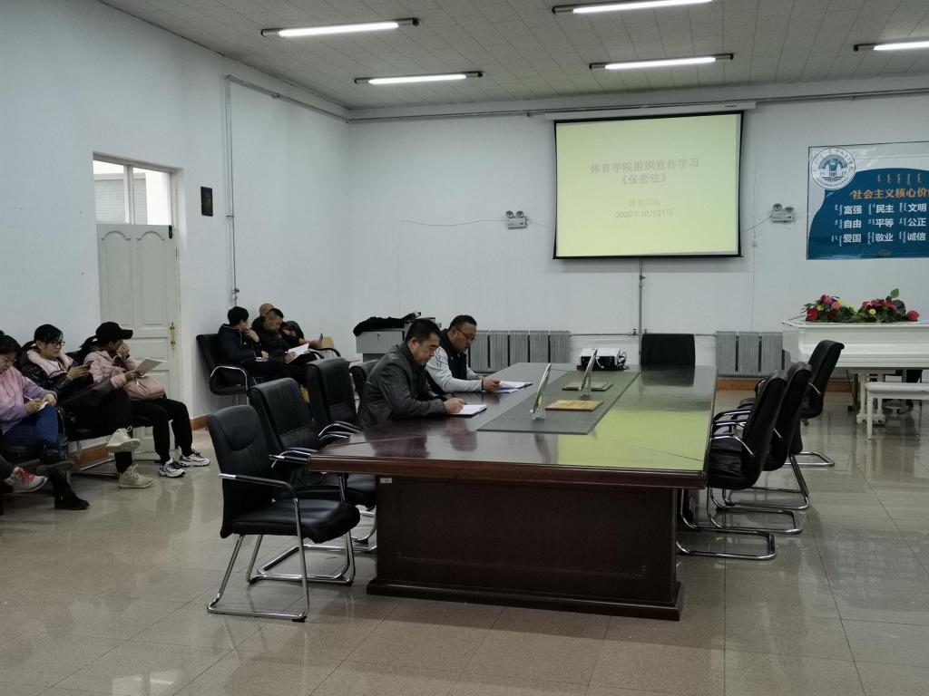 10月21日下午,体育学院组织全体教师学习《保密法》,本次学习由体育学院院长李晓峰主持,体育学院副院长林剑冬及全体教师参加了学习。
