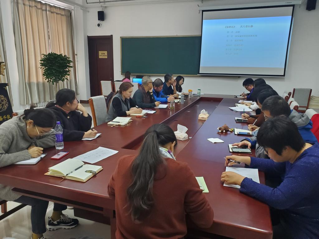 10月21日,法学院教师王丹为全体教师做了《中华人民共和国保守国家秘密法》解读讲座,分别就国家秘密的范围和密级、保密制度、监督管理、法律责任进行了全面细致的讲解。讲座之后,全院教师参加了“忠诚 使命”保密知识线上竞赛活动。