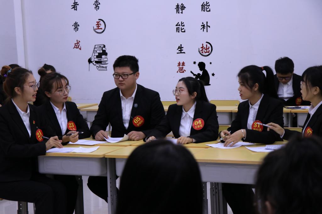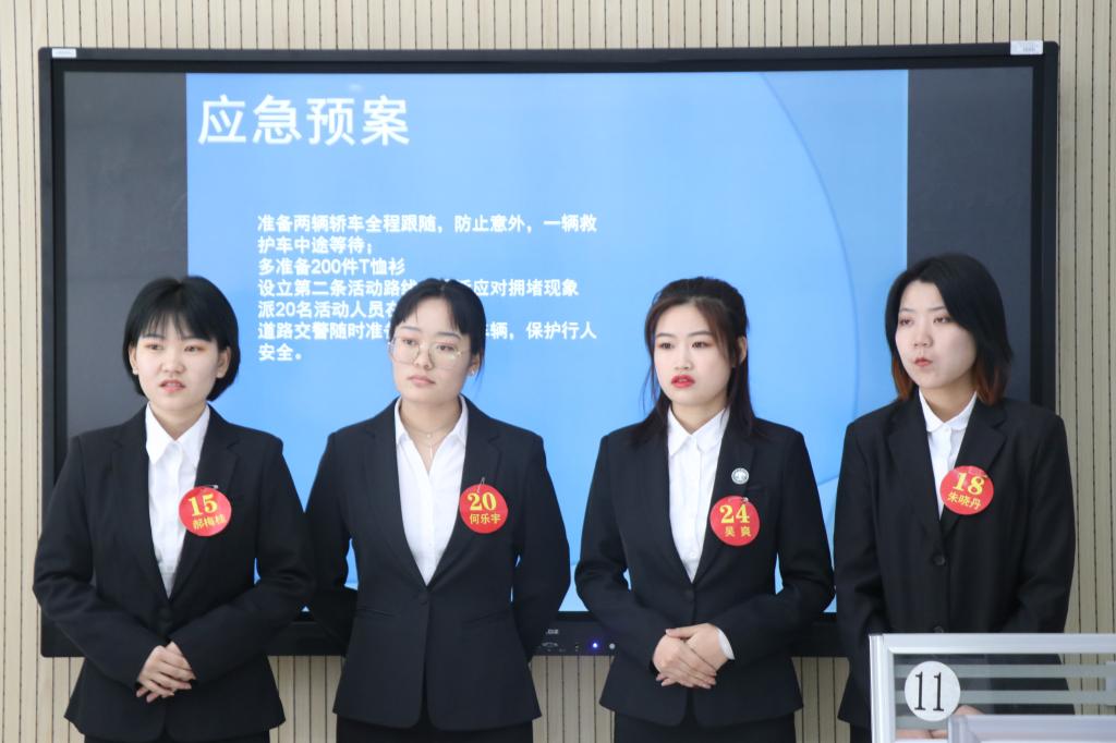 比赛共八支队伍,参加了四个环节的比拼,分别为公文写作、文案策划制作、文案讲解与答辩、职业形象与素养展示(无领导小组讨论),共持续了6个小时,时间紧、任务重,是对学生智力和体力的考验。前两个环节在短短90分钟内,要求参赛团队完成两篇公文写作、一篇策划文案和一个汇报PPT的制作。重点考察参赛者公文写作知识、大型活动策划能力、文案写作知识、PPT制作技巧。第三环节考察学生的语言表达能力、应变能力和精神风貌。下午两个小时的职业形象与素养展示为随机抽签组队,这种形式是当前公务员和企业面试采用的方式之一,主要考察学生的知识储备、思辨能力以及团队意识。此次比赛采用评委现场打分和赛后阅卷的方式完成成绩评定。