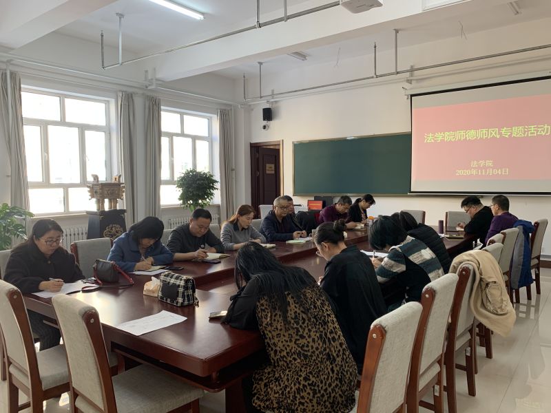 为持续贯彻落实学校开展“厚植爱国情怀 涵育高尚师德,加强新时代教师队伍建设”师德师风专题通知的精神,11月4日下午,法学院组织全体教职工在崇文楼B428召开师德师风专题活动,本次活动由党总支书记苏杰主持。