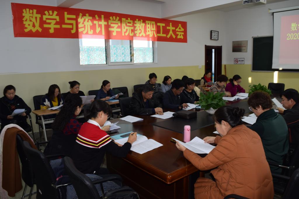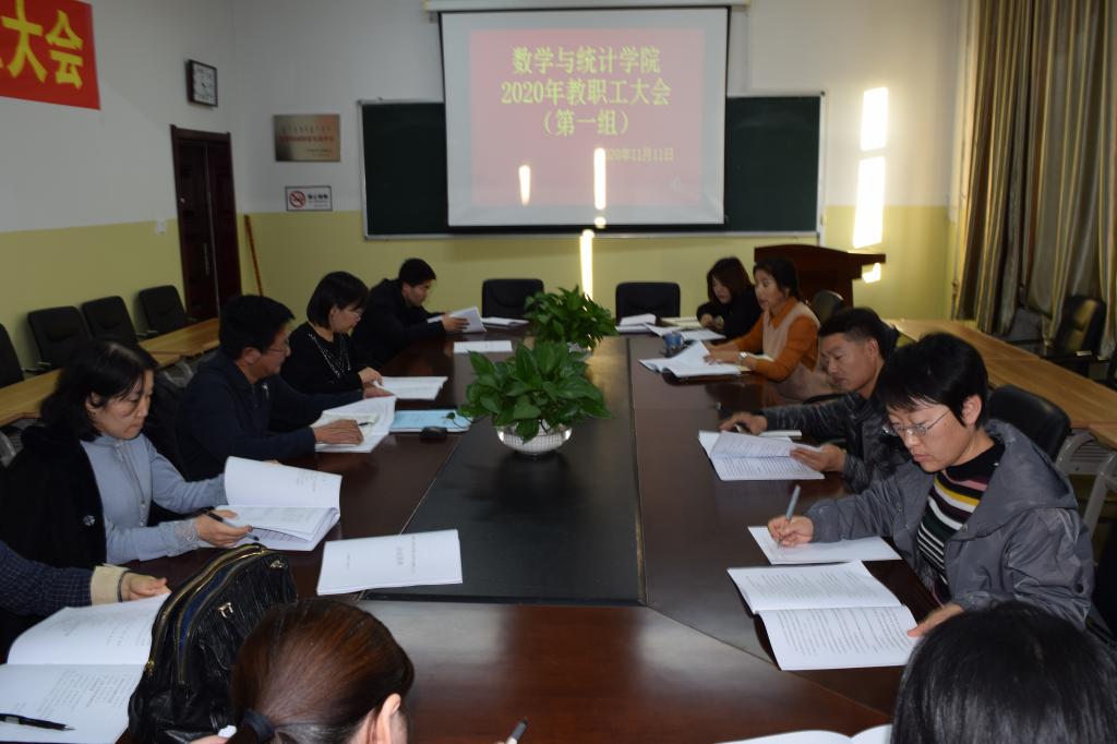 11月11日下午,数学与统计学院在职教楼410召开2020年教职工大会。学院领导班子成员出席会议,全体教职工参加会议。会议由分工会主席石磊主持。